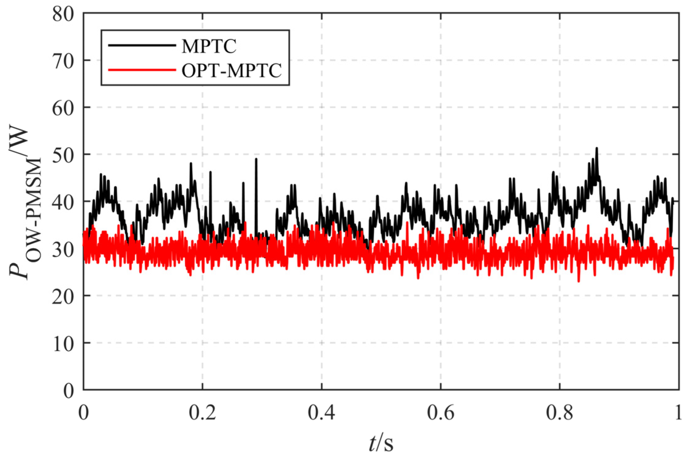 OW-PMSM is the total loss of the OW-PMSM drive system; that is, the sum of the OW-PMSM loss and the inverter loss. When the system is stable, ω