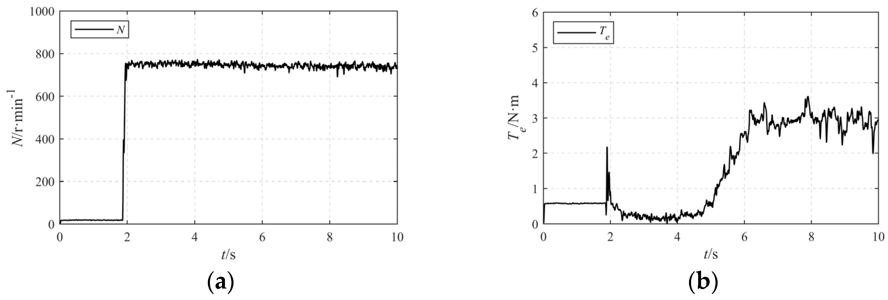 Condition 1 refers to a speed of 750 r·min−1 and a load torque of 1 N·m, with corresponding weight parameters of λTe = 14.564, λ0 = 4843.4, λloss = 0.1316. After stabilization, the system performance data is output.