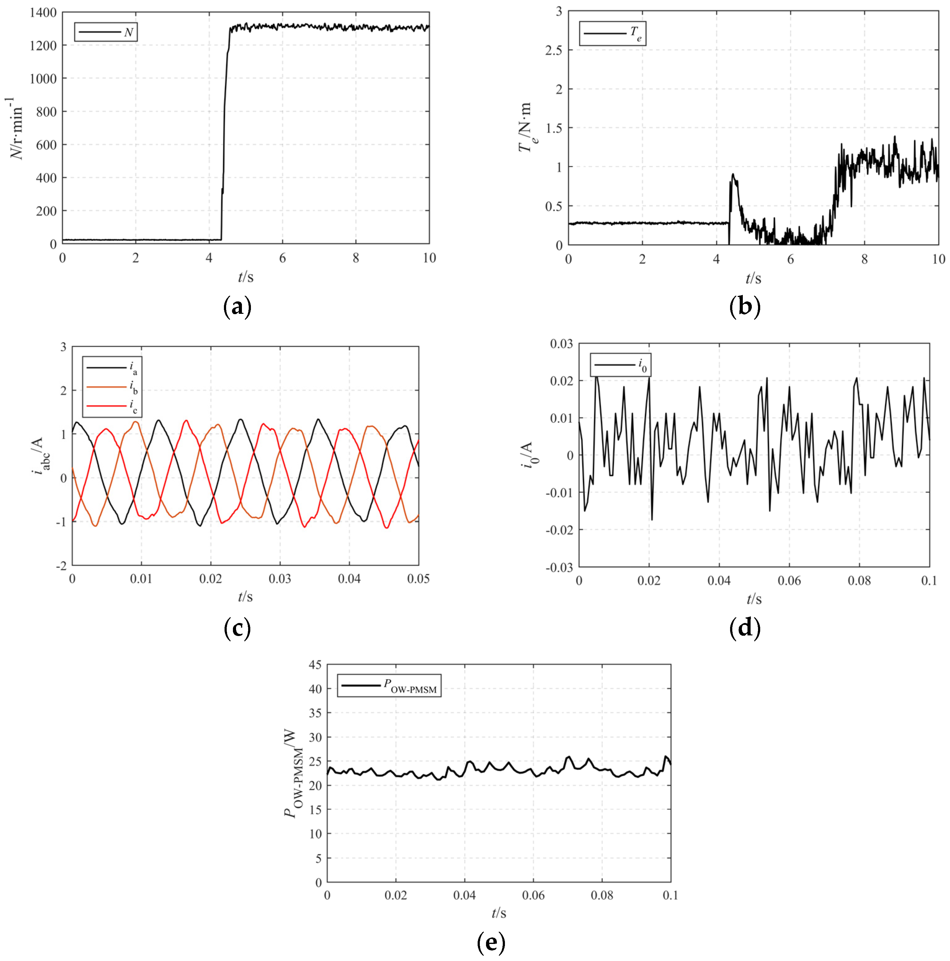 Figure 18, under this operating condition, the OW-PMSM has been verified to achieve fast startup, with smooth commutation and excellent steady-state performance. It can be observed that, under this operating condition, the OW-PMSM enables a dynamic acceleration of 1300 r·min