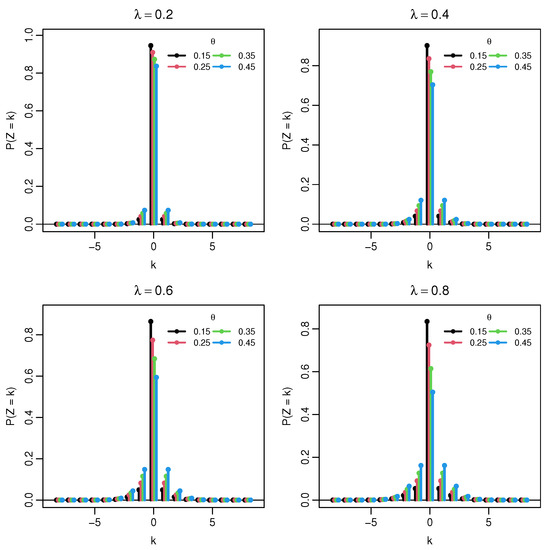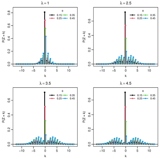 - Sangpoom, S.; Bodhisuwan, W. The discrete asymmetric Laplace distribution. J. Stat. Theory Pract. 2016, 10, 73–86. [Google Scholar] [CrossRef]