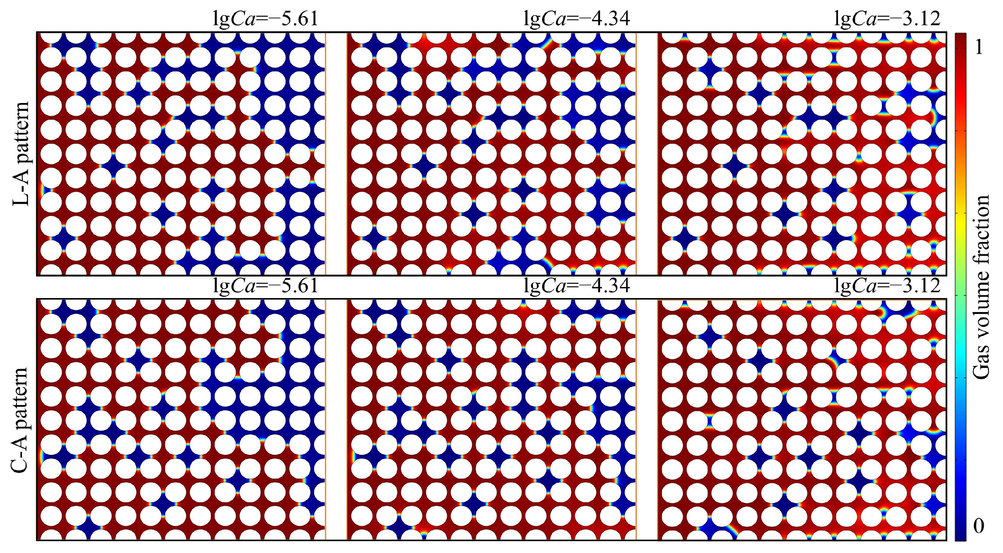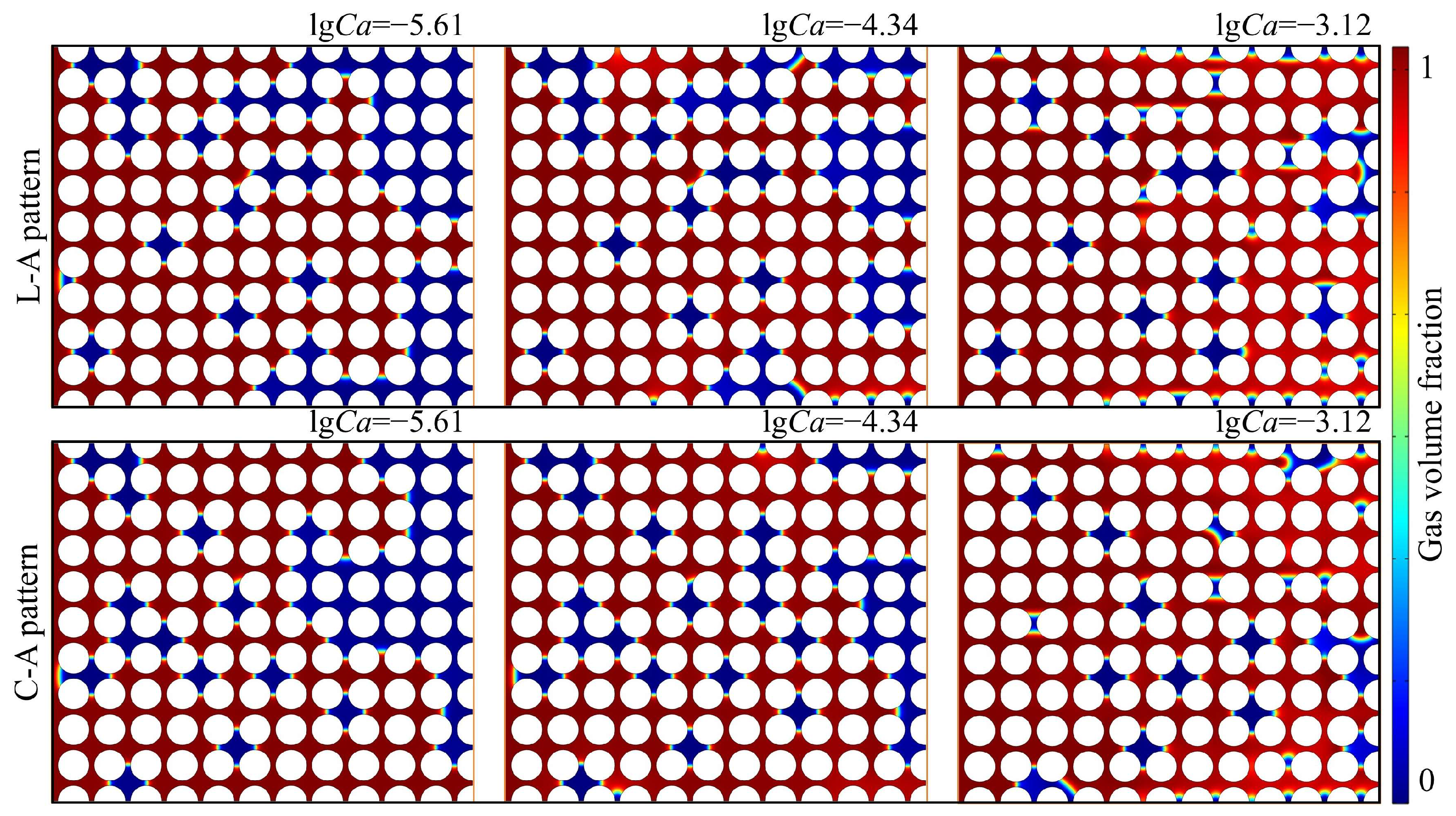 3.3.2. The Influence of Capillary Number on the Local Distribution of Residual Phase