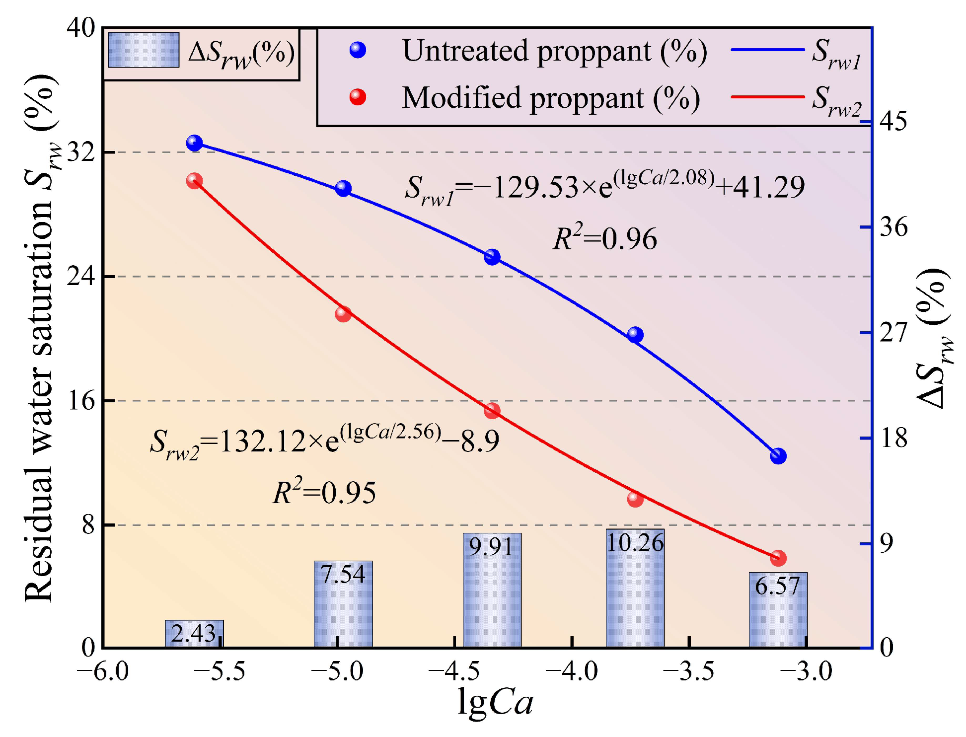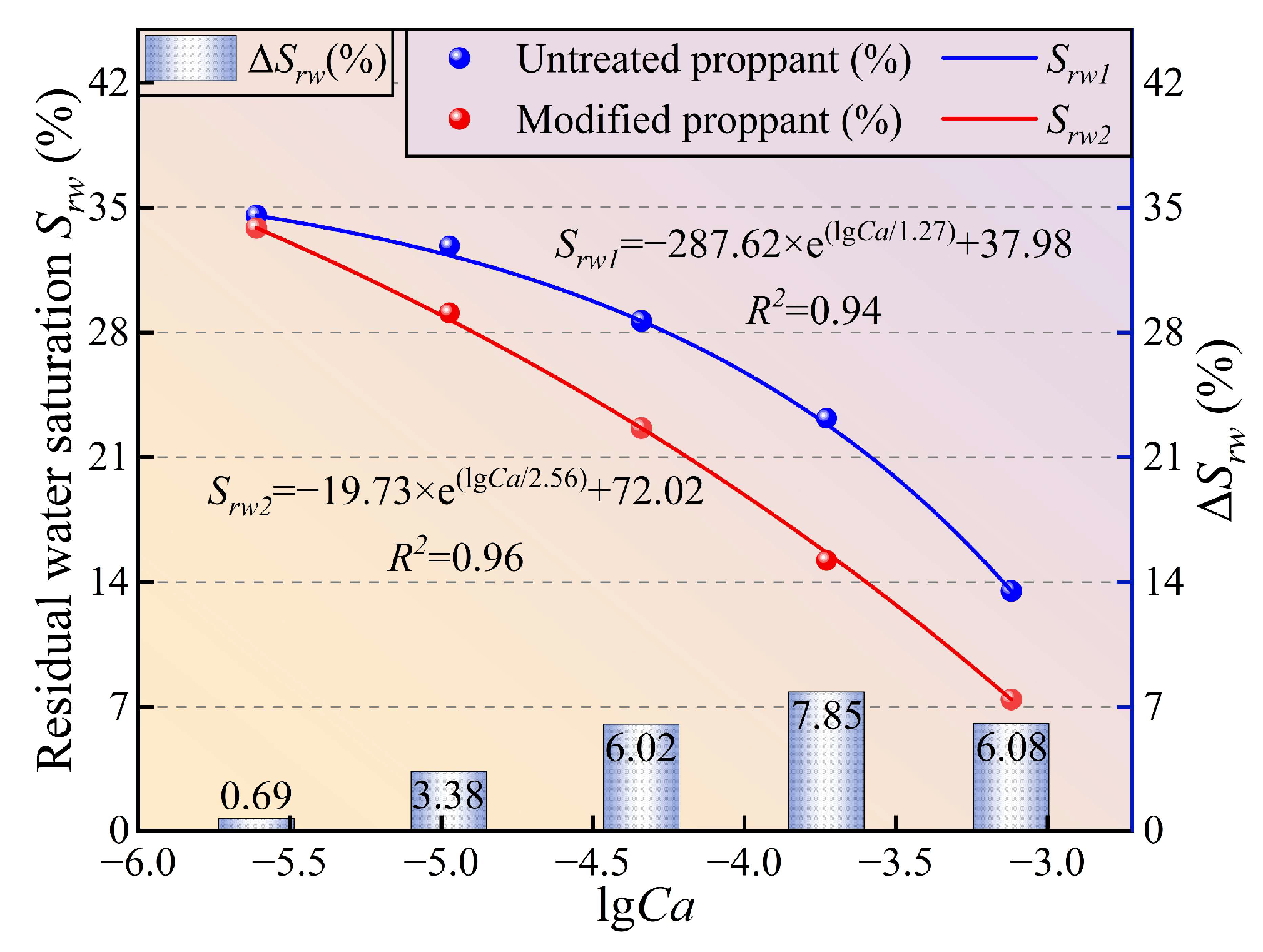 - The modification of proppant wetting properties reverses the direction of interfacial forces. Neutral modification drives the fracturing fluid to detach through interface repulsion, which can reduce the residual fluid saturation by up to 52.8%, significantly improving the backflow efficiency.