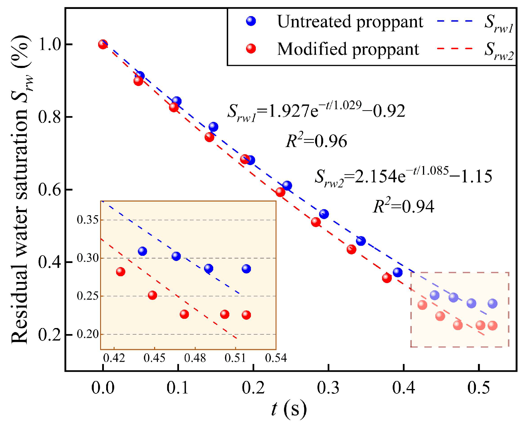 3.2.2. Distribution Characteristics of Residual Phase of Fracturing Fluid in Modified Proppant