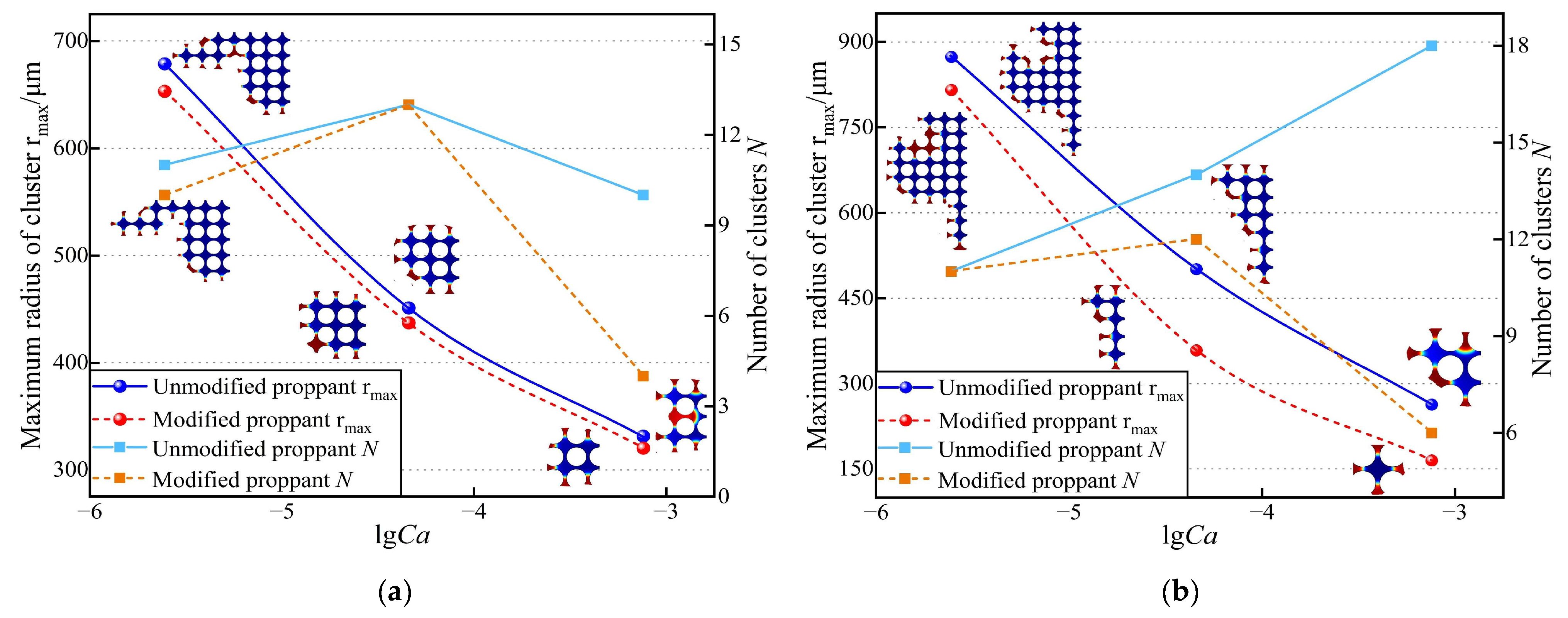 3.2. The Influence Mechanism of Proppant Modification on Fracturing Fluid Flowback