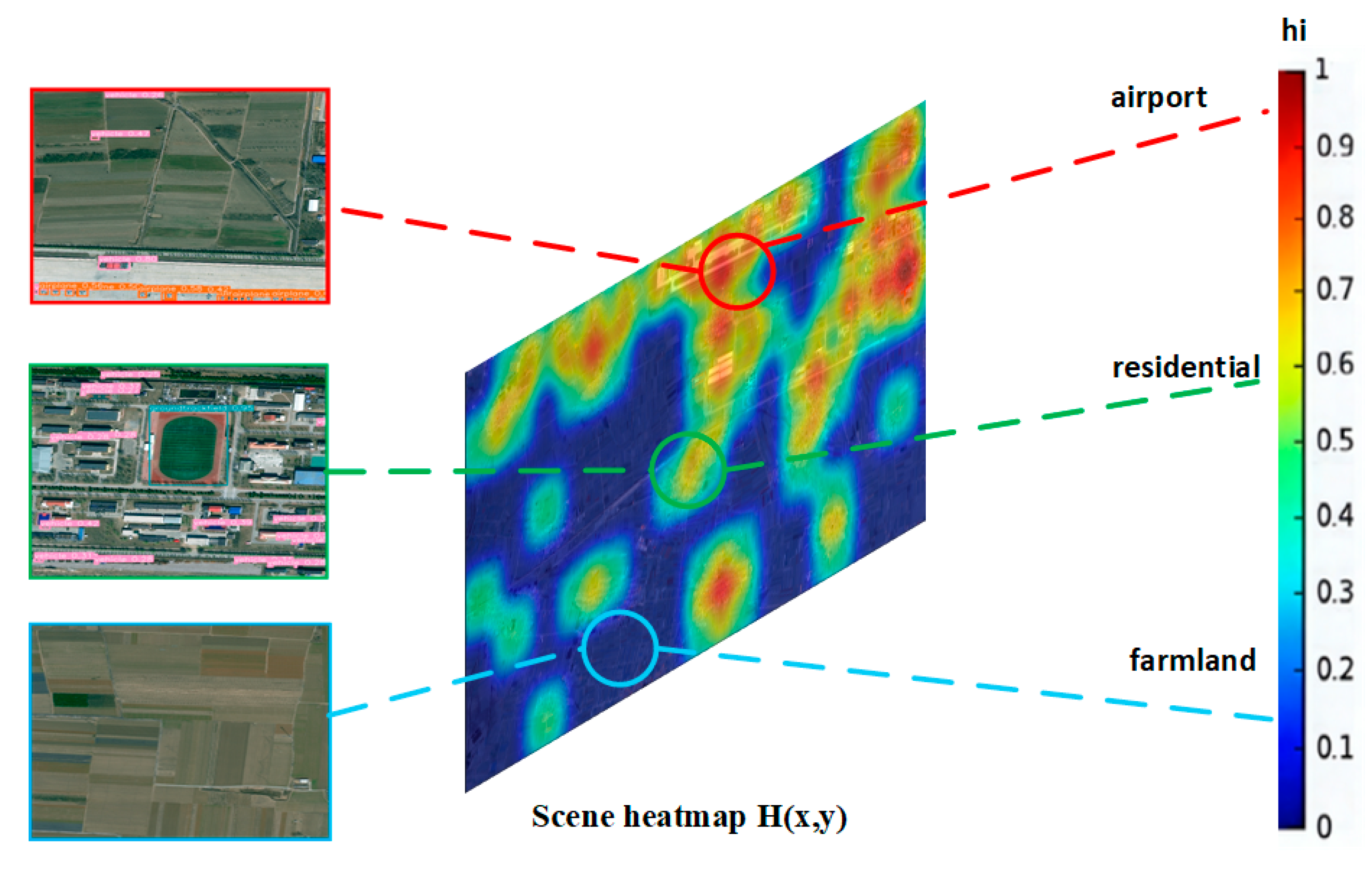 27] in several key aspects. While DMNet relies on object density estimation which requires instance-level annotations and may struggle with scale variations, our scene heatmap approach operates at the semantic level, requiring only scene category labels that are easier to obtain and generalize better across datasets. This semantic foundation provides superior scalability to new geographical areas and object categories, as scene semantics tend to be more transferable than precise object density distributions.