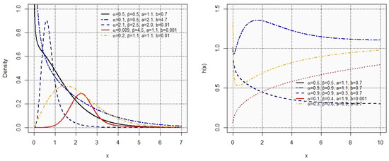 - Muhammad, M.; Xiao, J.; Abba, B.; Muhammad, I.; Ghodhbani, R. A New Hybrid Class of Distributions: Model Characteristics and Stress–Strength Reliability Studies. Axioms 2025, 14, 219. [Google Scholar] [CrossRef]