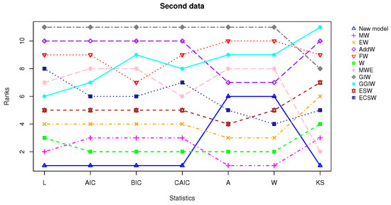 Line plot for ranking assessment based on the statistics for the second dataset.