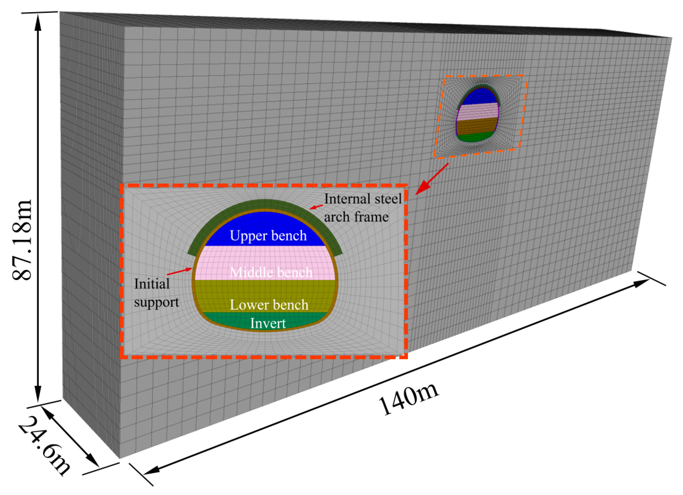 - Li, G.-L.; Song, Y.; Li, L.; Wang, X.; Li, B. Double-layer Support Technology of Large-section Loess Tunnel by Benching Method. Strateg. Study CAE 2014, 16, 54–63. [Google Scholar]
