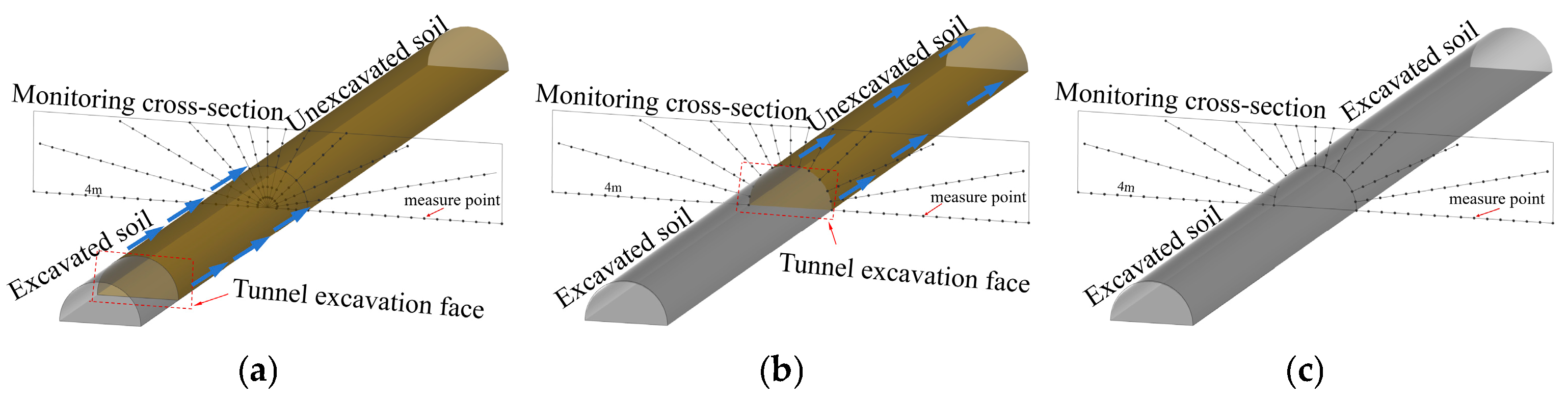 - Feng, J.-M.; Tan, Y.-M.; Yao, S.-Y.; Yan, Z.-J.; Zhang, J.-R.; Wang, S.-T. Deformation Control Mechanism of shallow Cohesive Loess Tunnel and Related Countermeasures. Tunn. Constr. 2023, 43, 1712–1722. [Google Scholar]