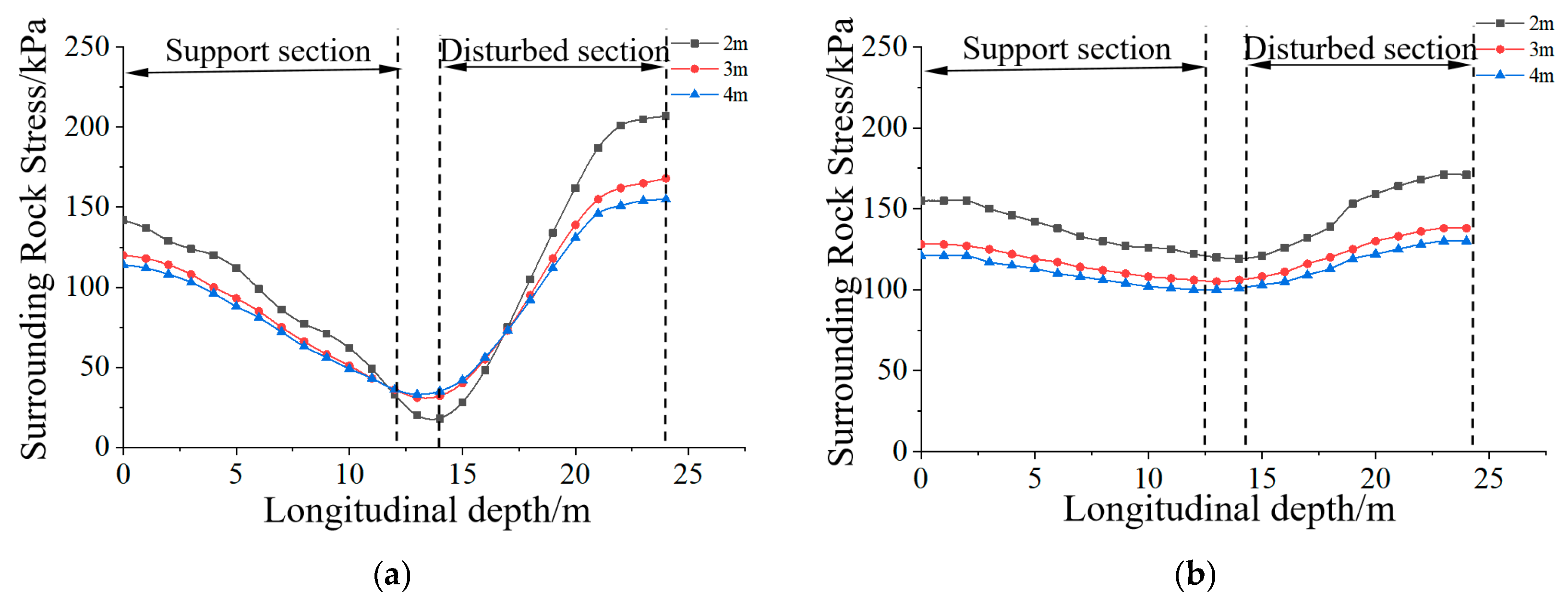 4.3.1. Vertical Stress Distribution at Different Depths Above the Vault