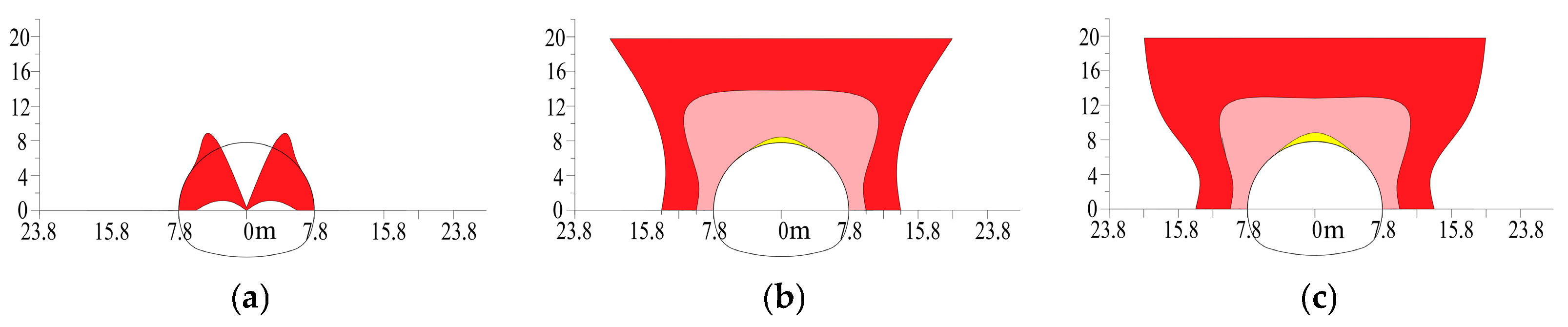 - Wang, M.-N.; Dong, Y.-C.; Yu, L. Elastoplastic Analytical Solution of Surrounding Rock for Loess Tunnel Based on Bilinear Strength Criterion. China Railw. Sci. 2019, 40, 68–77. [Google Scholar]