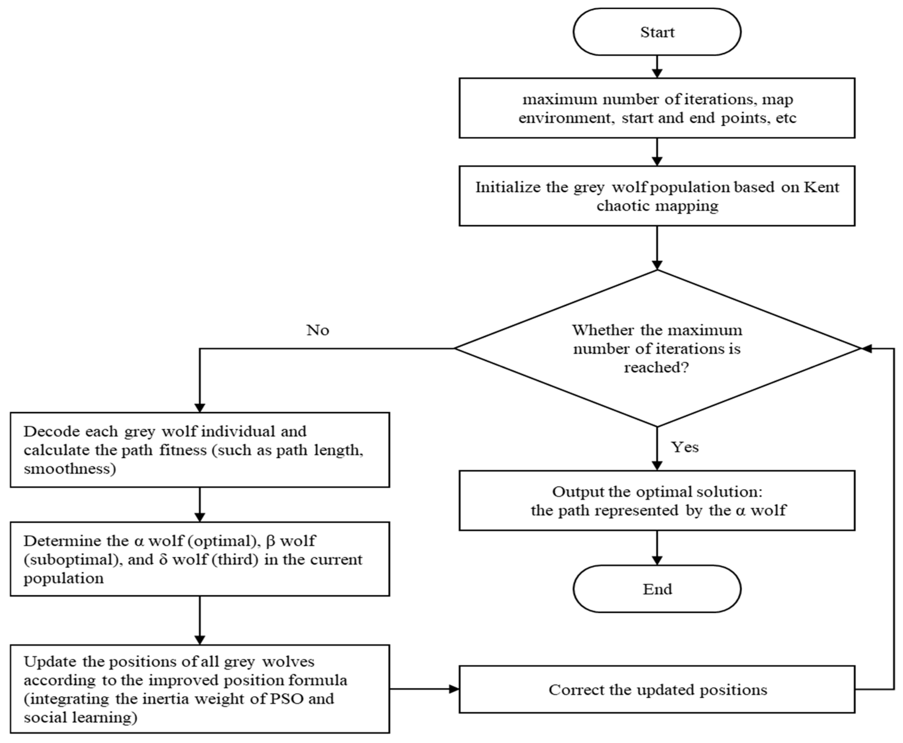 The Grey Wolf Optimizer (GWO) has been widely applied in UAV path planning, thanks to its advantages of simple structure, few parameters, and easy implementation [