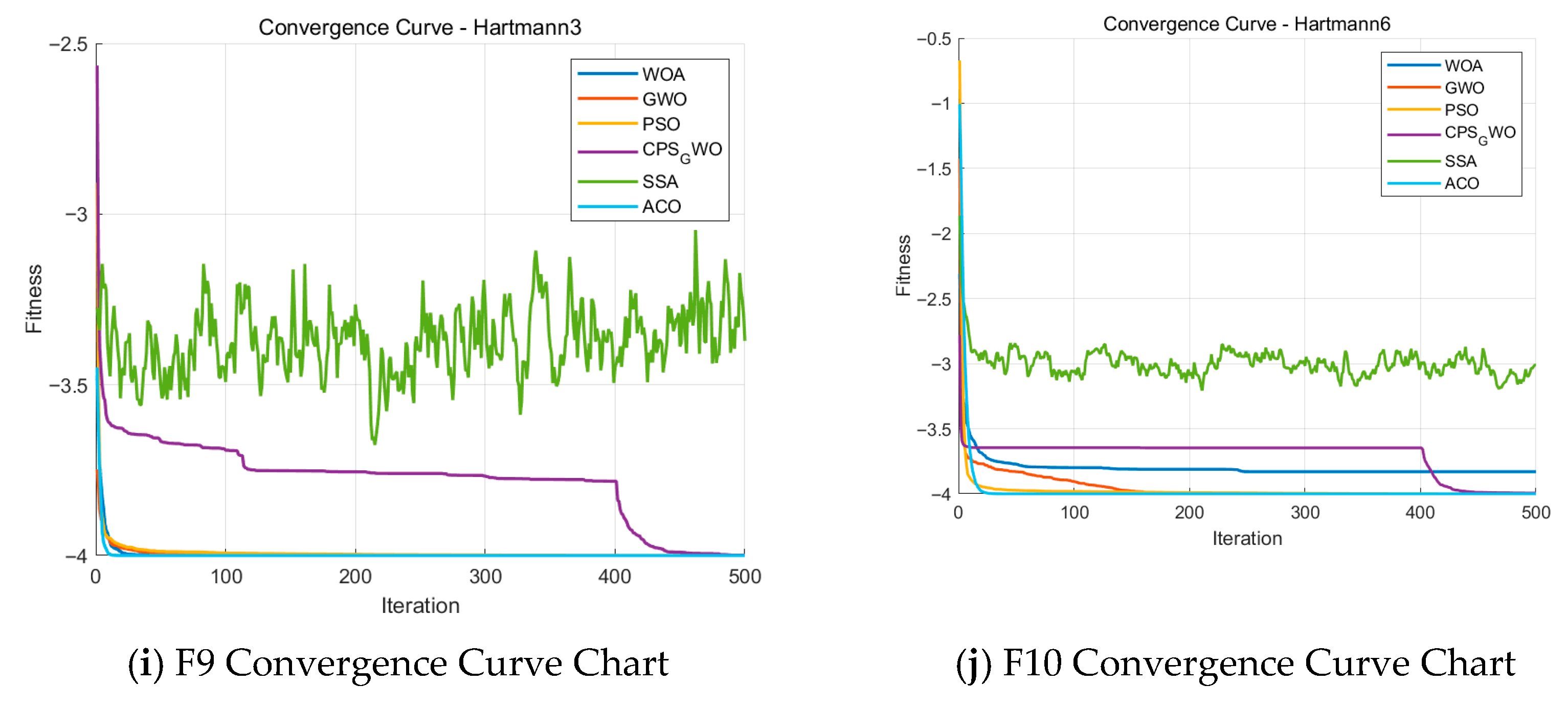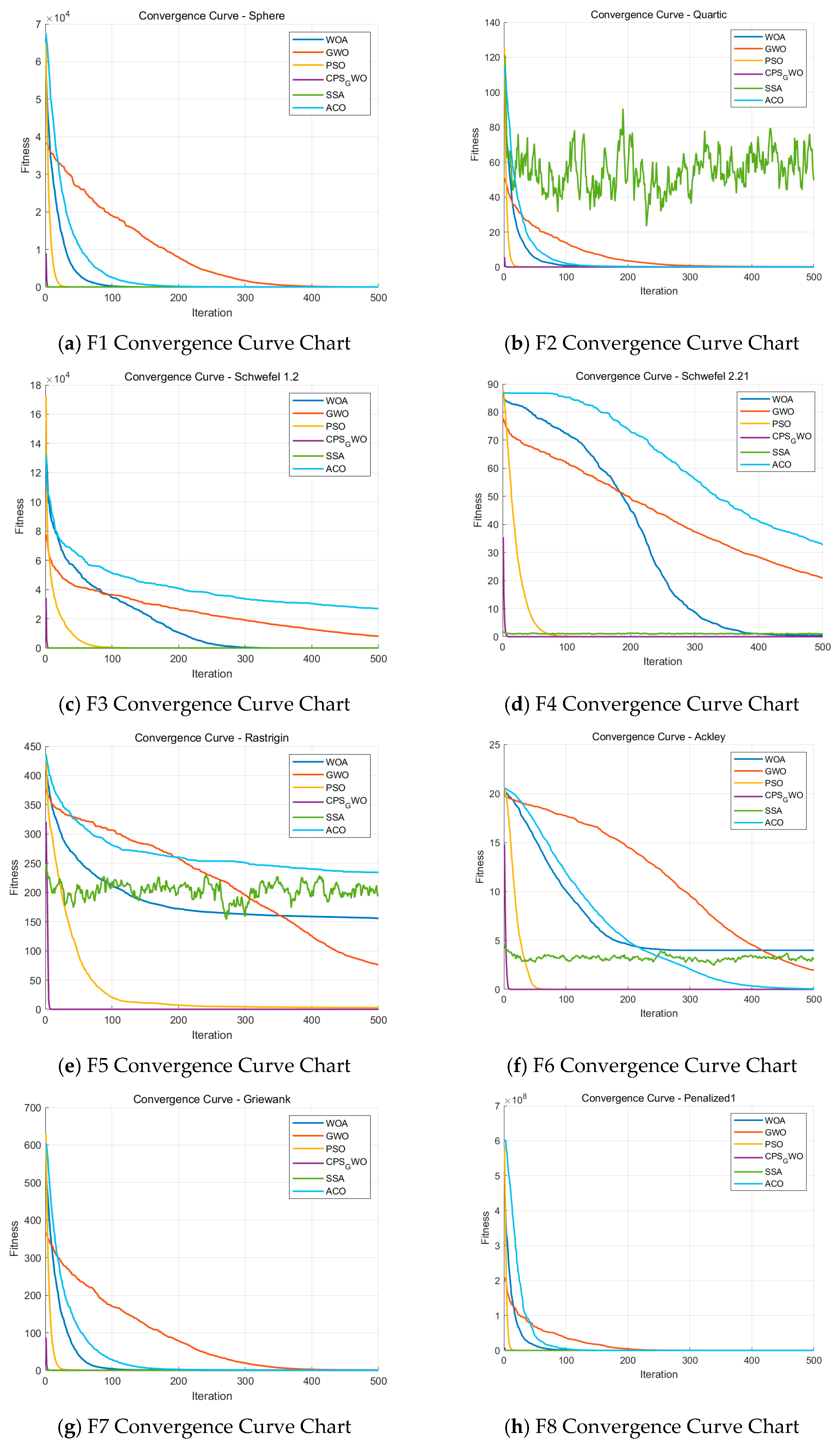 To validate the effectiveness of the proposed CPS-GWO, this study compares the CPS-GWO with the WOA, PSO, GWO, SSA and ACO using ten benchmark test functions as shown in