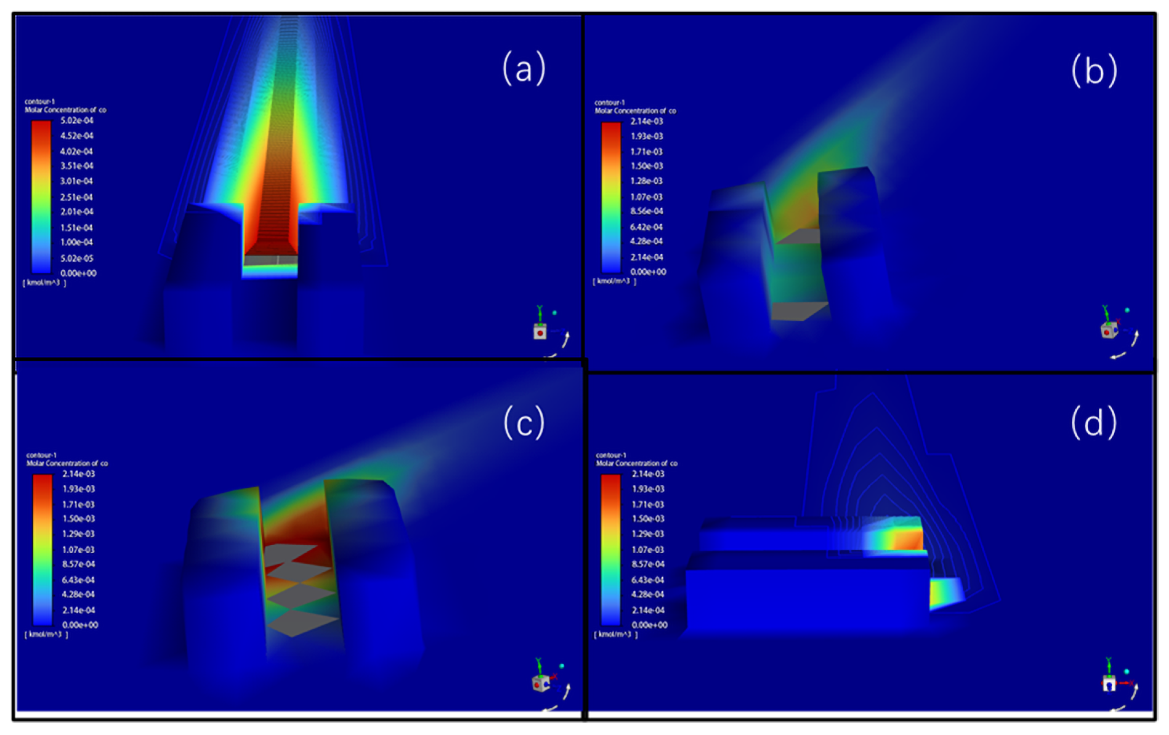 15], respectively, conducted fluid dynamics modeling and calculations on pollutant diffusion patterns for special vehicle types operating in confined spaces. Researchers in related fields have used fluid dynamics simulation techniques to examine the effects of factors such as rooftop greening systems [