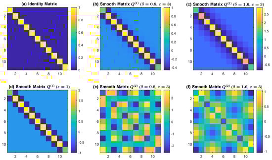 Illustration of smooth matrices. (a) Identity matrix. (b) with and . (c) with and . (d) with . (e) with and . (f) with and .