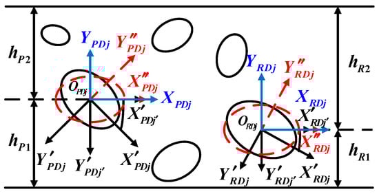 Similarly, as shown in Figure 5, for an elliptical hole that is mirrored downwards an odd number of times, the coordinate transformation relationship is the same as that of the upward mirror, but the translation distance is different from that of the original elliptical hole.