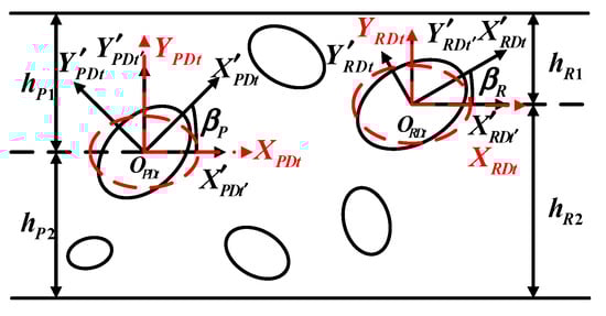 As shown in Figure 2, after establishing the local coordinate system and the coordinate system in the horizontal direction of the elliptical hole , the corresponding complex plane is and , and the corresponding angle between the two coordinate systems is . The relationship between the complex planes and can be expressed as follows: