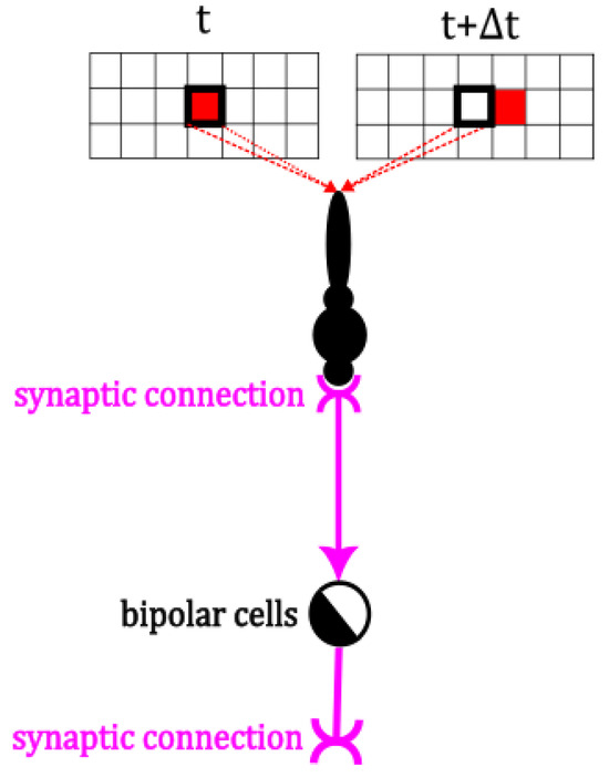 - Bipolar cells (BCs) are classified into three types based on their responses to changes in light intensity: ON, OFF, and ON–OFF [41]. In the SDDM model, ON–OFF bipolar cells are employed, characterized by their ability to respond to both increases and decreases in light intensity.