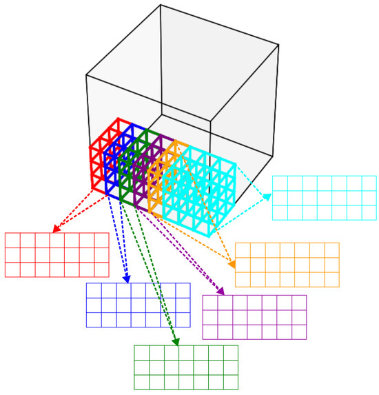 For DSGCs, each ganglion cell responds exclusively to light stimuli within its receptive field. To replicate this biological function in the SDDM, it is assumed that, during the photoreception phase, a three-dimensional object is not projected onto the retina as a whole but rather in discrete units of voxels. As shown in Figure 9, the stride between each voxel unit is set to one minimal unit, producing an effect akin to the extraction of local motion information through three-dimensional convolution with a stride of 1.