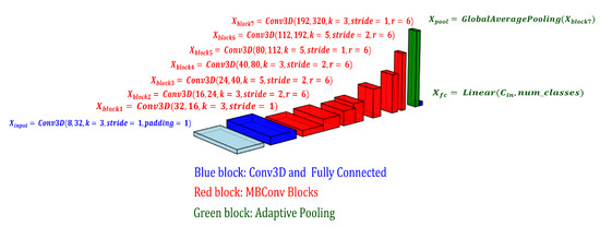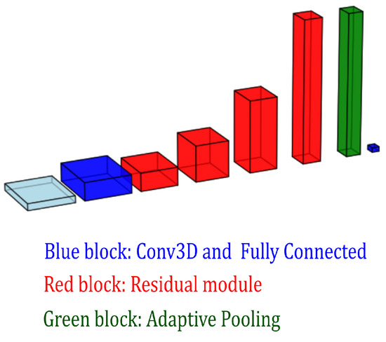 In practical applications, 3D CNNs have also made notable progress in several fields. Specifically, 3D ResNet, benefiting from the introduction of residual blocks and the increased depth of the network architecture, has demonstrated outstanding performance in the classification of brain magnetic resonance imaging (MRI) data, particularly in tasks involving the classification of Alzheimer’s disease (AD), mild cognitive impairment (MCI), and normal control (NC) groups [17]. Building upon this success, the enhanced 3D EfficientNet model, introduced in 2022, incorporates 3D mobile inverted bottleneck convolution (MBConv) layers alongside squeeze-and-excitation (SE) mechanisms to effectively capture multi-scale features from 3D MRI scans. These architectural improvements significantly enhance the model’s ability to perform the early detection and prediction of AD, demonstrating superior performance compared to previous approaches [18]. Furthermore, the newly proposed ResNet-101 model employs transfer learning techniques, leveraging pre-trained weights to improve detection performance in previously unseen scenarios. This approach enables efficient detection in complex environments and under varying speeds, further highlighting the robustness of CNNs in 3D motion detection tasks [19].