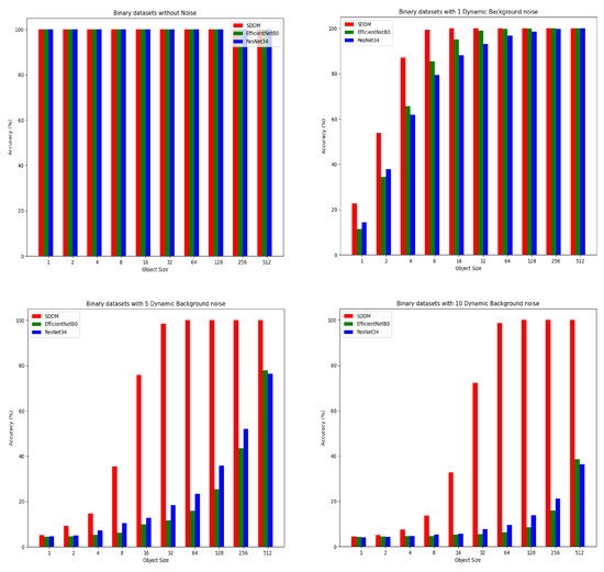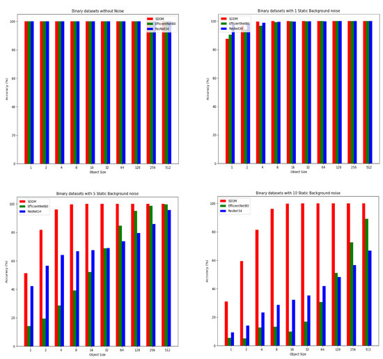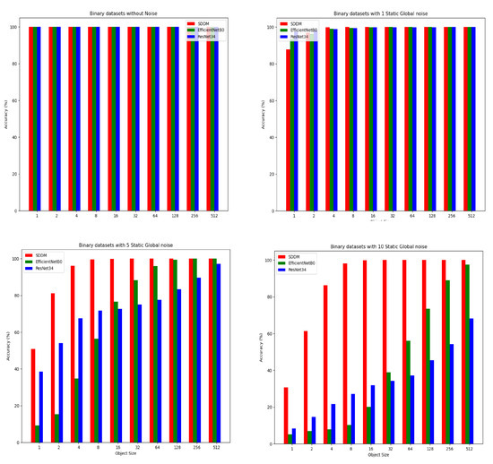 The experiments were conducted with three levels of noise percent: 1%, 5%, and 10%. The results shown in Table 2 indicate that adding static background noise has a certain impact on the SDDM’s detection accuracy. However, this impact mainly arises from the extreme scenario where the proportion of noise voxels greatly exceeds that of the target object, a situation in which even the human visual system struggles to make accurate judgments. As the size of the target object increases, the detection accuracy gradually returns to a high level of 100%.