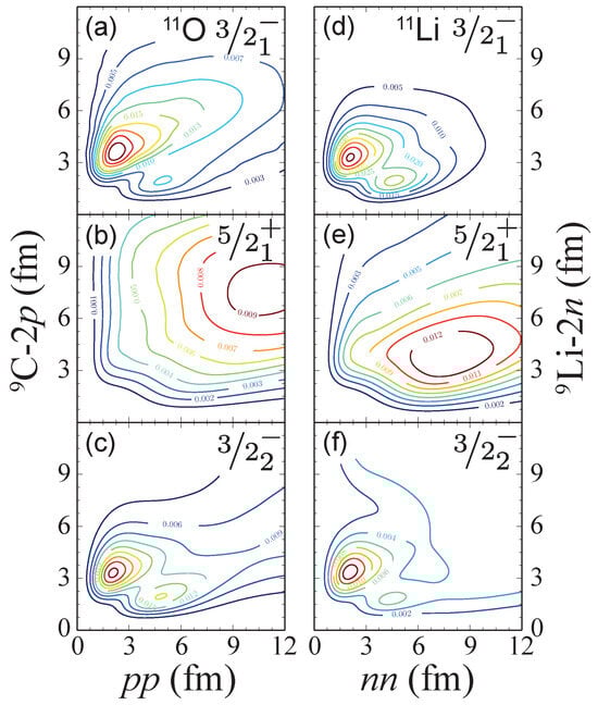 - Wang, S.M.; Michel, N.; Nazarewicz, W.; Xu, F.R. Structure and decays of nuclear three-body systems: The Gamow coupled-channel method in Jacobi coordinates. Phys. Rev. C 2017, 96, 044307. [Google Scholar] [CrossRef]