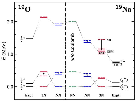 - Zhang, S.; Ma, Y.Z.; Li, J.G.; Hu, B.S.; Yuan, Q.; Cheng, Z.H.; Xu, F.R. The roles of three-nucleon force and continuum coupling in mirror symmetry breaking of oxygen mass region. Phys. Lett. B 2022, 827, 136958. [Google Scholar] [CrossRef]