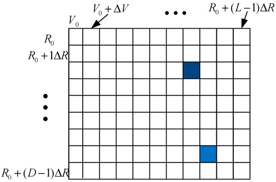 Suppose that a total of targets are present in the radar’s observation scene. Each target has its own radial distance and radial velocity relative to the radar, where denotes the index of the number of targets, which is used to distinguish different targets. When the signal emitted by the radar is reflected by these targets, the echo formed can be expressed as