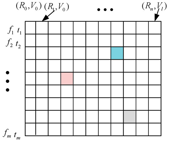 The vertical coordinates in Figure 3 indicate that is the initial distance and that is the amount of change increasing line by line, dividing the distance into individual grid points. The horizontal coordinates indicate that is the initial speed, is the number of changes that increase line by line, and the speed is divided into independent grid points.