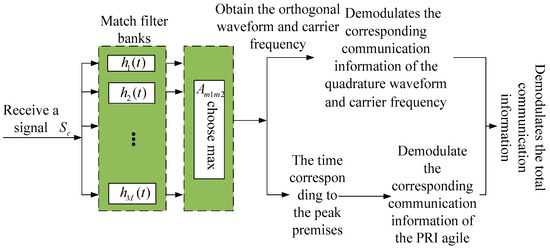 The communication data of PRI shortcut demodulation are , the communication data of carrier frequency shortcut demodulation are , the communication data of waveform demodulation are , and the total communication data are , which completes the demodulation of the total communication information. The communication demodulation processing flowchart is shown in Figure 5.