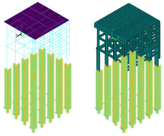 - The finite element simplified analysis model is established, and the MANSYS module is called by Python’s subprocess module for analysis, which proves the feasibility of batch calculation of pile foundation stress in the complex structure of the overhead vertical high-pile wharf. By comparing the stress characteristics with the solid element model, the calculation results of the simplified analysis model are verified to be correct, so that the sample space for inversion analysis can be obtained by using the simplified model calculation results.