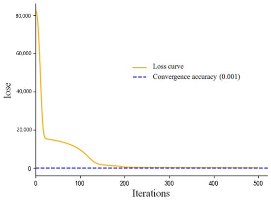 The identification of ship impact strength is a regression problem, and the regression learner uses variance as the model loss index. As can be seen from Figure 8, when the neural network model is iterated 500 times, the loss error reaches about 0.001, at which time the model can be basically judged to converge.