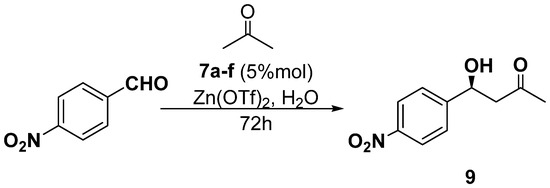 The influence of catalysts 7a–f on the course of the aldol reaction between acetone and 4-nitrobenzaldehyde.