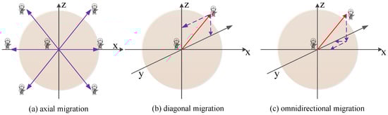 The besiege mechanism of soldiers determines the updating direction of the army, that is, the direction of finding the optimal solution. The position approach of a soldier will also change when influenced by different rules. In the BCA, three soldier position besiege mechanisms are designed, as shown in Figure 3.
