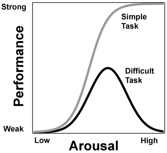 13]—states that, for a simple task, ‘performance’ varies as an S-shaped curve with increasing ‘arousal’, while for a difficult task, the pattern is an inverse-U (see