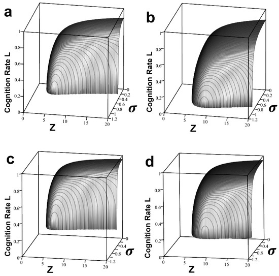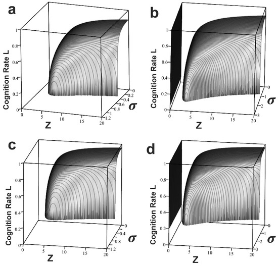 12)—under Weber–Fechner or Stevens data compression schemes, to first and second orders. It is conceivable, perhaps even to be expected, however, that some systems may need—or be driven—to increase the rate of signal detection with rising system burden, so that, from Equation (