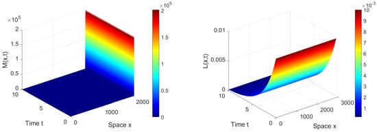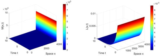 To verify the reliability and effectiveness of the numerical method in solving the problem, numerical simulations were conducted again on the quasi-steady-state approximate model. The model’s error, convergence, and numerical precision, along with its ability to effectively capture the dynamic behavior of the variables, were used to evaluate the model’s accuracy. Numerical simulations were performed using MATLAB R2023a software on a personal computer equipped with an AMD Ryzen 5 3500U processor (2.10 GHz) and 8 GB of RAM. This configuration provides sufficient computational power and precision for the finite difference method and grid density analysis.