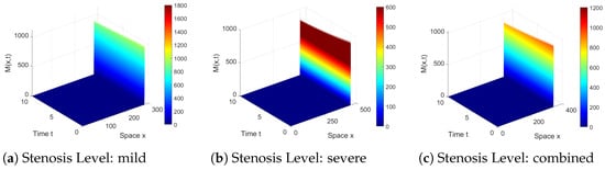 The concentration of over time and space was compared between mild, severe, and combined stenosis levels.