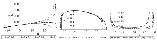 It is known that the Hubble parameter decreases with time at an extremely slow rate when chaotic inflation is taken into account, as discussed in reference [48]. Herein, we neglect this time dependence, assuming that , and analyze static solutions for different values of the Hubble parameter.
