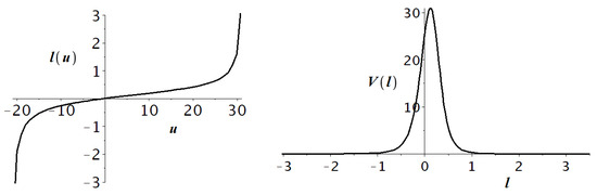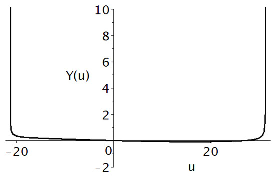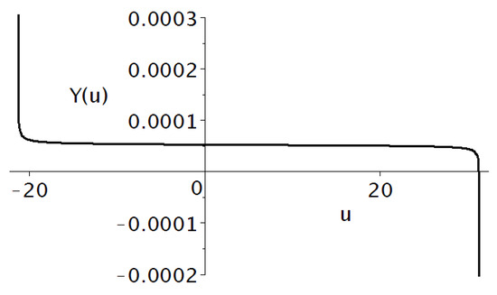 The appropriate function is represented in Figure 6. The effective parameters (48)–(50) also depend on the Lagrangian parameters which are fixed from the beginning, and on the distributions over the internal coordinate u. The latter are randomly created during the fluctuation stage and are specific to each causally separated 3D domain. A Higgs field distribution realized within some of such domains can lead to the observable Lagrangian parameters (see (46)) and hence resolve the hierarchy problem.