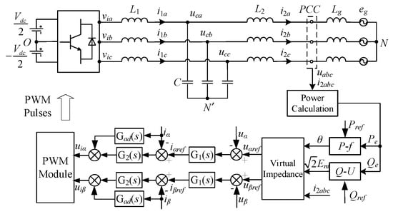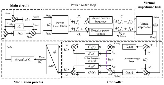 The voltage reference value obtained through the power outer-loop control and virtual impedance control in Section 2.1, Section 2.2 and Section 2.3 can be directly used as the modulation signal for SPWM, allowing the grid-connected system to exhibit inertia and damping characteristics as those of a synchronous generator. Nevertheless, since the relatively decelerated dynamic response of the outer loop control, the grid-tied power quality cannot be fully ensured. Therefore, it is necessary to add an inner-loop controller to accelerate the system’s dynamic response and improve power quality.