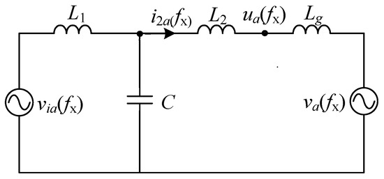 Injecting small signal voltage disturbances in positive and negative sequences with frequencies fp and fn on the grid side will generate current response signals with frequencies fp and fn, respectively. Taking phase a as an example, Figure 3 represents the harmonic small signal equivalent model of the main circuit. In the figure, the subscript x = p indicates the positive sequence disturbance component at frequency fp, while x = n indicates the negative sequence disturbance component at frequency fn.