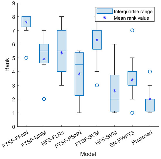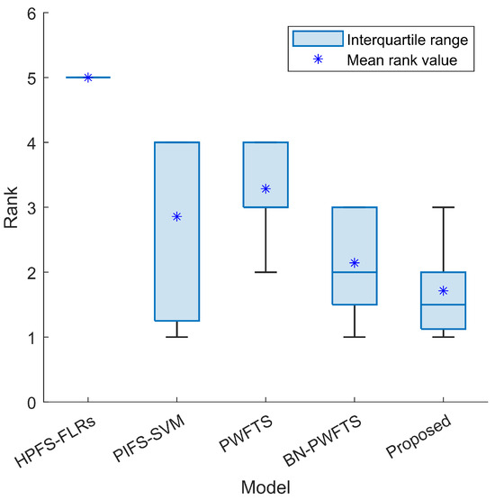 (1) Time series fuzzification: For given crisp observations , find the fuzzified values (). The membership value is preserved if ; alternatively, it is assigned a value of zero for the respective fuzzy set.