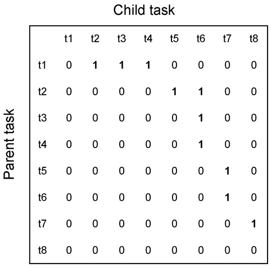 A matrix to describe the relation between the tasks in Figure 1.