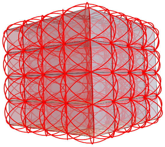 Circle configuration for the 2-skeleton of the cubical tessellation of . Each cube of the tessellation contributes six circles.