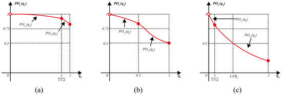 - does not exist if and only if the minimum of exceeds 0.5, i.e., , for , which gives . For , since is a strictly decreasing function with , there exists one and only one , which can be obtained by solving for . Thus, we have , and Proposition 1(3) holds true.