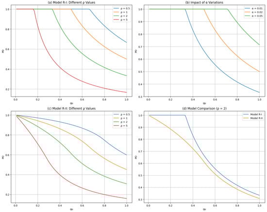 The third statement indicates that approaches 100% as q nears 0%, regardless of . We aimed to determine if this theorem holds when he TDR follows the random variable Q distributed with . By substituting Q with q in Equations (3) and (4), we derive IDR and as