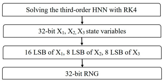 Schematic description of RNG based on the elaborated third-order HNN chaotic model.