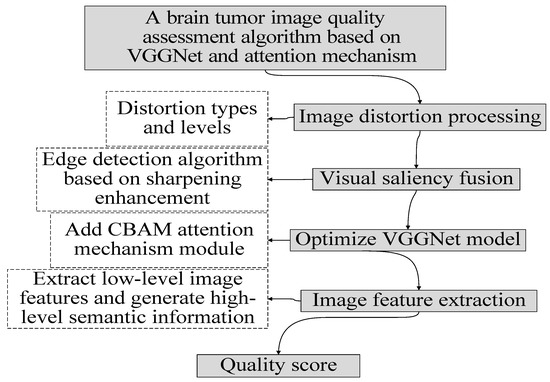 At present, there is limited research on image quality assessment in the medical field. Our algorithm takes brain tumors as the research object and proposes a network model based on VGGNet and the attention mechanism module CBAM, later referred to as AM-VGG-IQA.