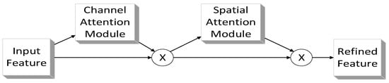 The simplified model diagram of CBAM is shown in Figure 4, which consists of two sub modules: CAM (channel attention module) and SAM (spatial attention module), which perform channel and spatial processing, respectively.